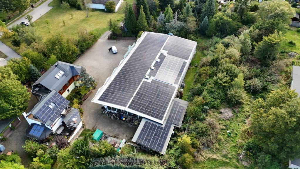Für das Unternehmen haben wir eine moderne Photovoltaikanlage mit 341 Modulen auf dem Dach und an der Fassade installiert. Mit einer Leistung von 150,04 kWp spart die Anlage jedes Jahr rund 86.975 kg CO₂ ein.
